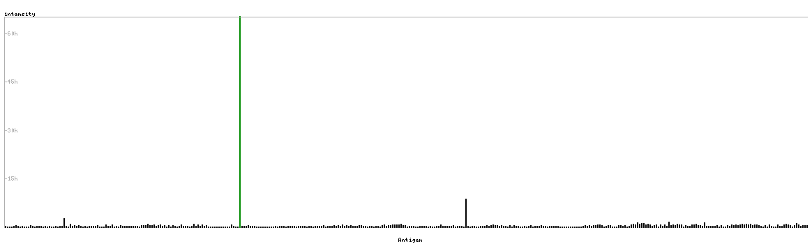 The curve in blue displays the predicted antigenicity i.e. the tendency for different regions of the protein to generate an immune response, with peak regions being predicted to be more antigenic.The curve shows average values based on a sliding window approach using an in-house propensity scale. (read more).