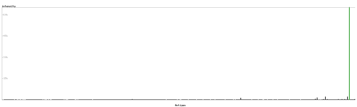 The curve in blue displays the predicted antigenicity i.e. the tendency for different regions of the protein to generate an immune response, with peak regions being predicted to be more antigenic.The curve shows average values based on a sliding window approach using an in-house propensity scale. (read more).