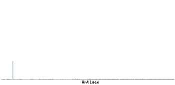 At the top of the view, the position of the antigen (identified by the corresponding HPA identifier) is shown as a green bar. A yellow triangle on the bar indicates a <100% sequence identity to the protein target.