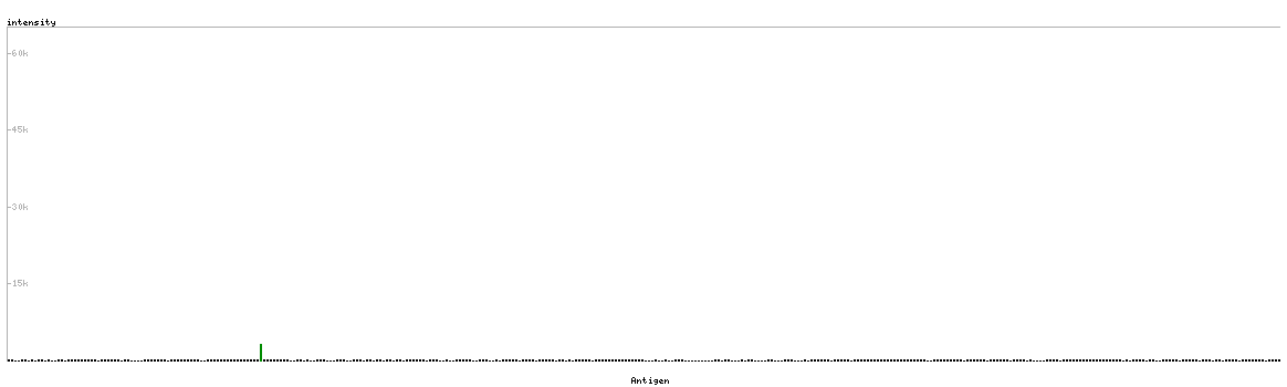 At the top of the view, the position of the antigen (identified by the corresponding HPA identifier) is shown as a green bar. A yellow triangle on the bar indicates a <100% sequence identity to the protein target.