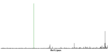 The curve in blue displays the predicted antigenicity i.e. the tendency for different regions of the protein to generate an immune response, with peak regions being predicted to be more antigenic.The curve shows average values based on a sliding window approach using an in-house propensity scale. (read more).