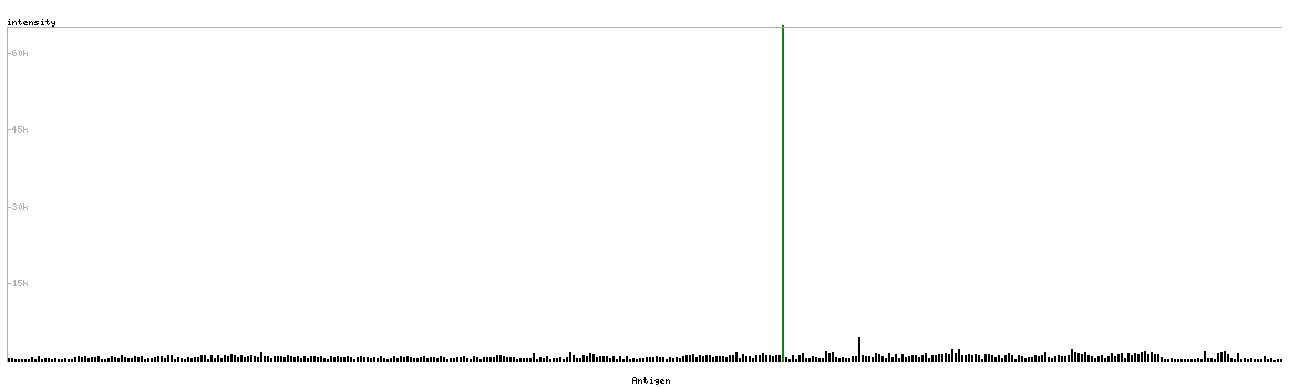 The curve in blue displays the predicted antigenicity i.e. the tendency for different regions of the protein to generate an immune response, with peak regions being predicted to be more antigenic.The curve shows average values based on a sliding window approach using an in-house propensity scale. (read more).