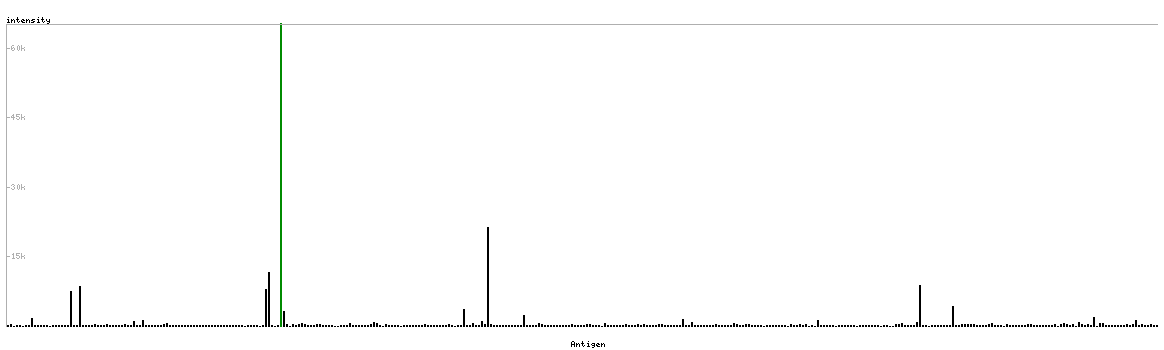 The curve in blue displays the predicted antigenicity i.e. the tendency for different regions of the protein to generate an immune response, with peak regions being predicted to be more antigenic.The curve shows average values based on a sliding window approach using an in-house propensity scale. (read more).