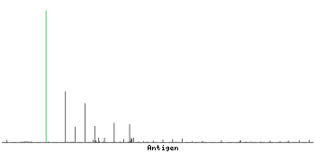The curve in blue displays the predicted antigenicity i.e. the tendency for different regions of the protein to generate an immune response, with peak regions being predicted to be more antigenic.The curve shows average values based on a sliding window approach using an in-house propensity scale. (read more).