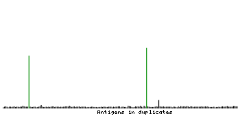 At the top of the view, the position of the antigen (identified by the corresponding HPA identifier) is shown as a green bar. A yellow triangle on the bar indicates a <100% sequence identity to the protein target.