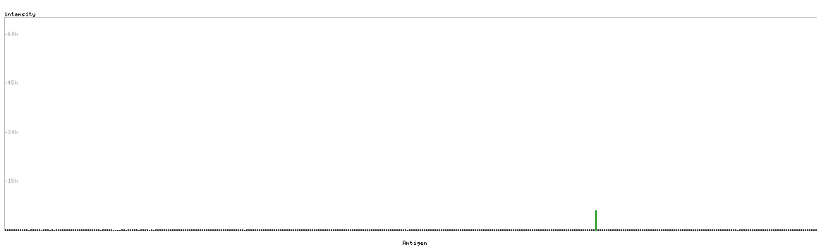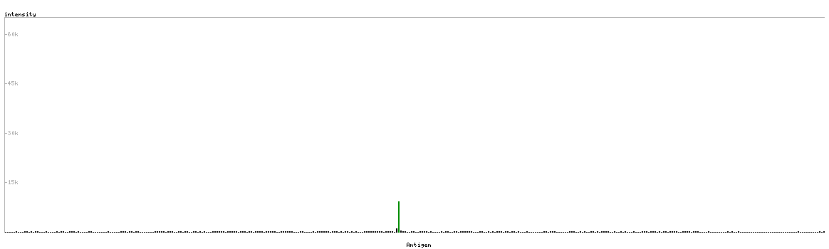 At the top of the view, the position of the antigen (identified by the corresponding HPA identifier) is shown as a green bar. A yellow triangle on the bar indicates a <100% sequence identity to the protein target.
