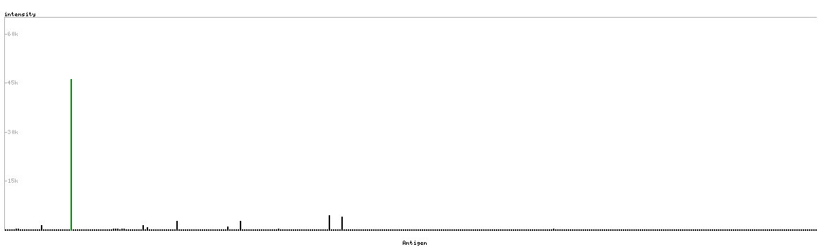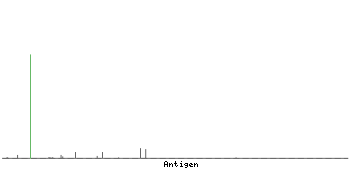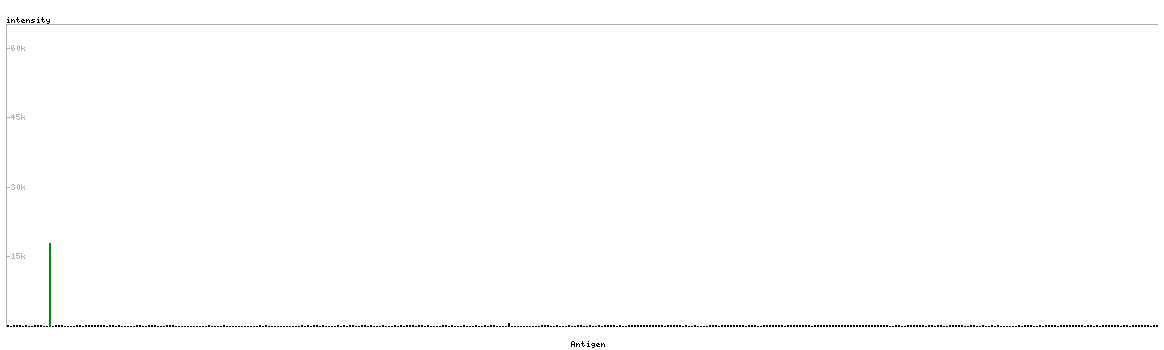 At the top of the view, the position of the antigen (identified by the corresponding HPA identifier) is shown as a green bar. A yellow triangle on the bar indicates a <100% sequence identity to the protein target.