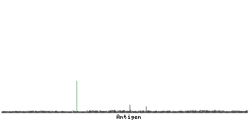 At the top of the view, the position of the antigen (identified by the corresponding HPA identifier) is shown as a green bar. A yellow triangle on the bar indicates a <100% sequence identity to the protein target.