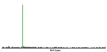 At the top of the view, the position of the antigen (identified by the corresponding HPA identifier) is shown as a green bar. A yellow triangle on the bar indicates a <100% sequence identity to the protein target.