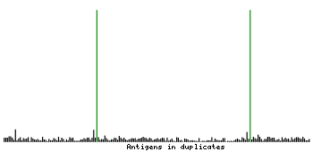 At the top of the view, the position of the antigen (identified by the corresponding HPA identifier) is shown as a green bar. A yellow triangle on the bar indicates a <100% sequence identity to the protein target.