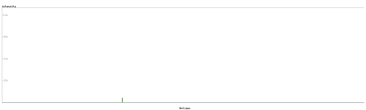 At the top of the view, the position of the antigen (identified by the corresponding HPA identifier) is shown as a green bar. A yellow triangle on the bar indicates a <100% sequence identity to the protein target.