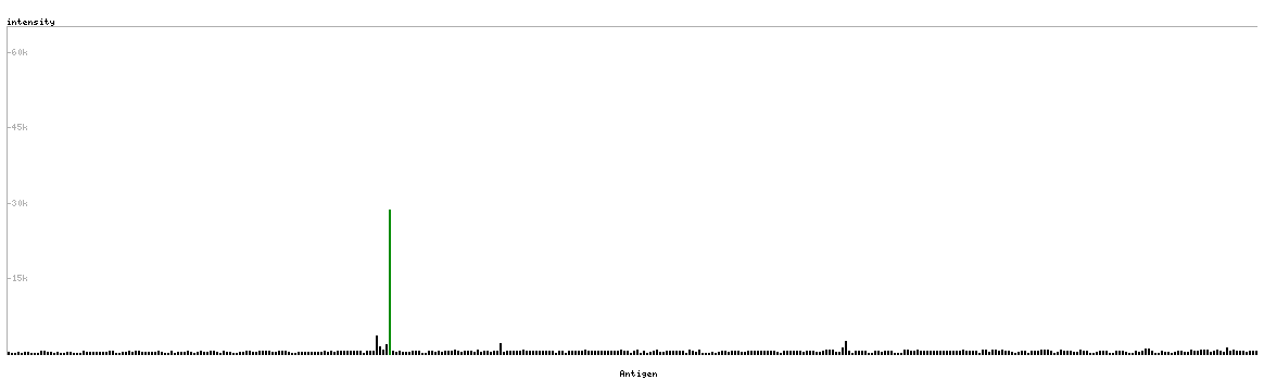 The curve in blue displays the predicted antigenicity i.e. the tendency for different regions of the protein to generate an immune response, with peak regions being predicted to be more antigenic.The curve shows average values based on a sliding window approach using an in-house propensity scale. (read more).