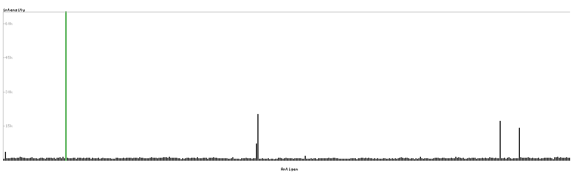 The curve in blue displays the predicted antigenicity i.e. the tendency for different regions of the protein to generate an immune response, with peak regions being predicted to be more antigenic.The curve shows average values based on a sliding window approach using an in-house propensity scale. (read more).