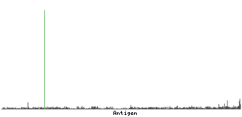Below the antigens, the maximum percent sequence identity of the protein to all other proteins from other human genes is displayed, using a sliding window of 10 aa residues (HsID 10) or 50 aa residues (HsID 50). The region with the lowest possible identity is always selected for antigen design, with a maximum identity of 60% allowed for designing a single-target antigen (read more).