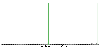 At the top of the view, the position of the antigen (identified by the corresponding HPA identifier) is shown as a green bar. A yellow triangle on the bar indicates a <100% sequence identity to the protein target.