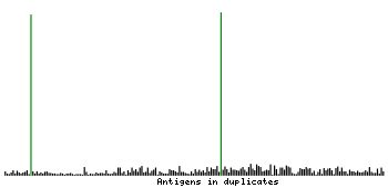 At the top of the view, the position of the antigen (identified by the corresponding HPA identifier) is shown as a green bar. A yellow triangle on the bar indicates a <100% sequence identity to the protein target.