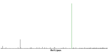 At the top of the view, the position of the antigen (identified by the corresponding HPA identifier) is shown as a green bar. A yellow triangle on the bar indicates a <100% sequence identity to the protein target.
