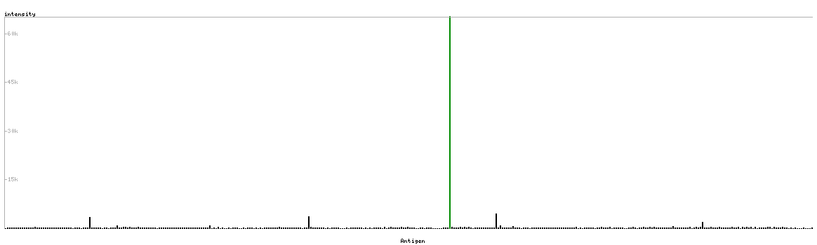 The curve in blue displays the predicted antigenicity i.e. the tendency for different regions of the protein to generate an immune response, with peak regions being predicted to be more antigenic.The curve shows average values based on a sliding window approach using an in-house propensity scale. (read more).