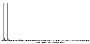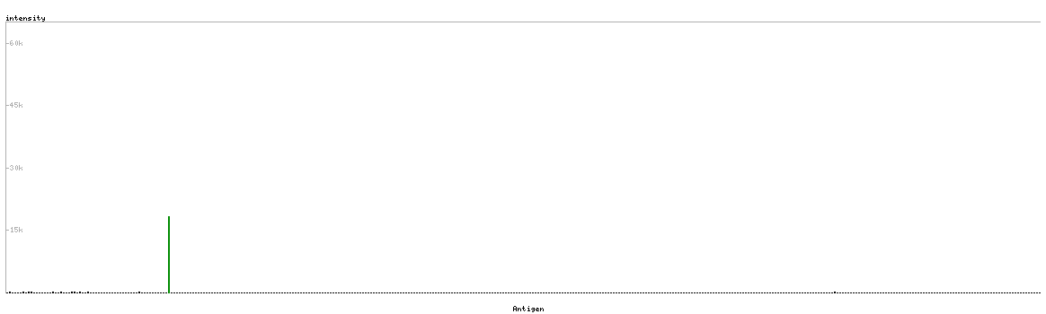 At the top of the view, the position of the antigen (identified by the corresponding HPA identifier) is shown as a green bar. A yellow triangle on the bar indicates a <100% sequence identity to the protein target.