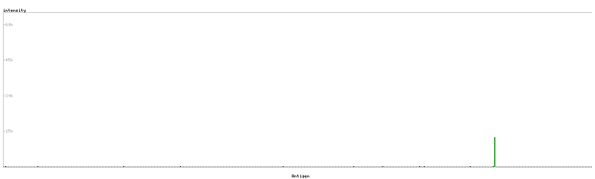 At the top of the view, the position of the antigen (identified by the corresponding HPA identifier) is shown as a green bar. A yellow triangle on the bar indicates a <100% sequence identity to the protein target.