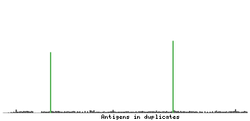 At the top of the view, the position of the antigen (identified by the corresponding HPA identifier) is shown as a green bar. A yellow triangle on the bar indicates a <100% sequence identity to the protein target.