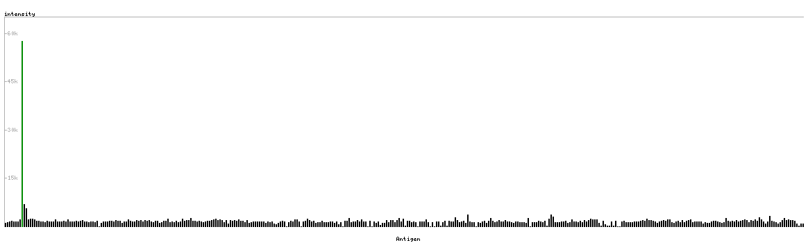 The curve in blue displays the predicted antigenicity i.e. the tendency for different regions of the protein to generate an immune response, with peak regions being predicted to be more antigenic.The curve shows average values based on a sliding window approach using an in-house propensity scale. (read more).