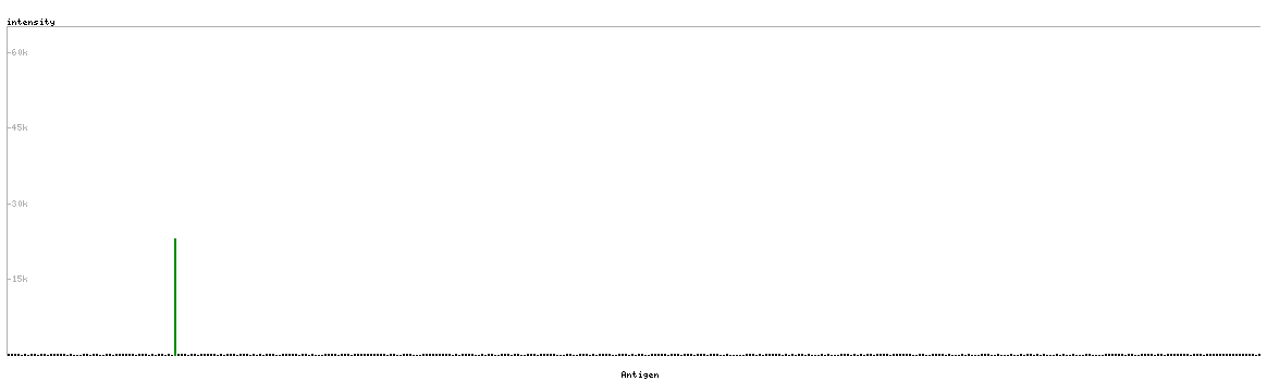 The curve in blue displays the predicted antigenicity i.e. the tendency for different regions of the protein to generate an immune response, with peak regions being predicted to be more antigenic.The curve shows average values based on a sliding window approach using an in-house propensity scale. (read more).