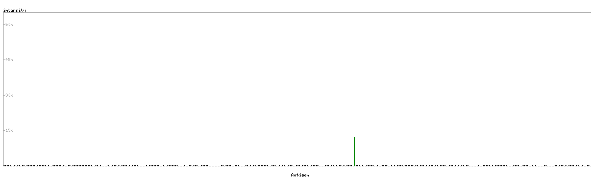 At the top of the view, the position of the antigen (identified by the corresponding HPA identifier) is shown as a green bar. A yellow triangle on the bar indicates a <100% sequence identity to the protein target.
