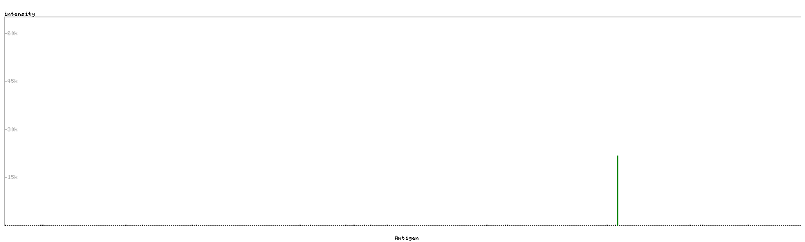 At the top of the view, the position of the antigen (identified by the corresponding HPA identifier) is shown as a green bar. A yellow triangle on the bar indicates a <100% sequence identity to the protein target.