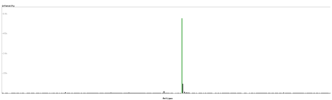 The curve in blue displays the predicted antigenicity i.e. the tendency for different regions of the protein to generate an immune response, with peak regions being predicted to be more antigenic.The curve shows average values based on a sliding window approach using an in-house propensity scale. (read more).