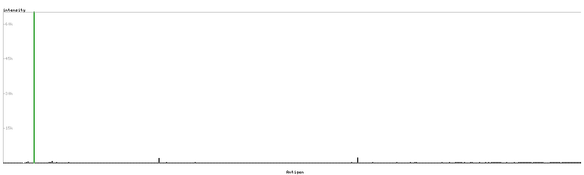 The curve in blue displays the predicted antigenicity i.e. the tendency for different regions of the protein to generate an immune response, with peak regions being predicted to be more antigenic.The curve shows average values based on a sliding window approach using an in-house propensity scale. (read more).