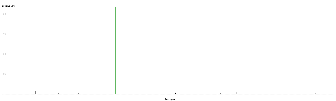 The curve in blue displays the predicted antigenicity i.e. the tendency for different regions of the protein to generate an immune response, with peak regions being predicted to be more antigenic.The curve shows average values based on a sliding window approach using an in-house propensity scale. (read more).