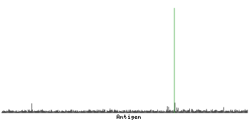 At the top of the view, the position of the antigen (identified by the corresponding HPA identifier) is shown as a green bar. A yellow triangle on the bar indicates a <100% sequence identity to the protein target.