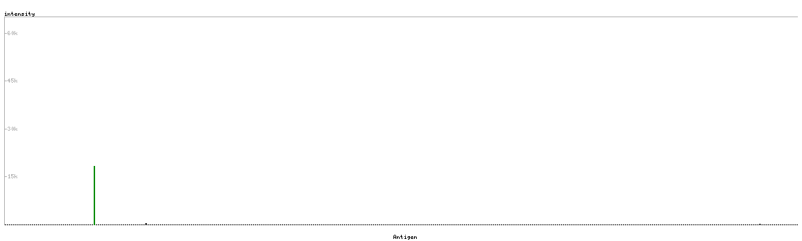 At the top of the view, the position of the antigen (identified by the corresponding HPA identifier) is shown as a green bar. A yellow triangle on the bar indicates a <100% sequence identity to the protein target.