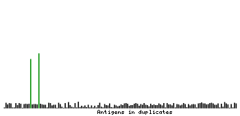 The curve in blue displays the predicted antigenicity i.e. the tendency for different regions of the protein to generate an immune response, with peak regions being predicted to be more antigenic.The curve shows average values based on a sliding window approach using an in-house propensity scale. (read more).