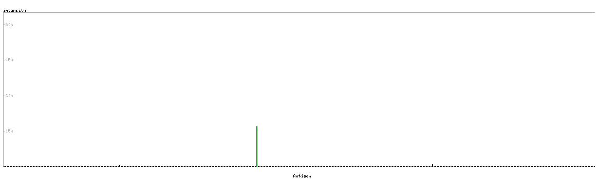 At the top of the view, the position of the antigen (identified by the corresponding HPA identifier) is shown as a green bar. A yellow triangle on the bar indicates a <100% sequence identity to the protein target.