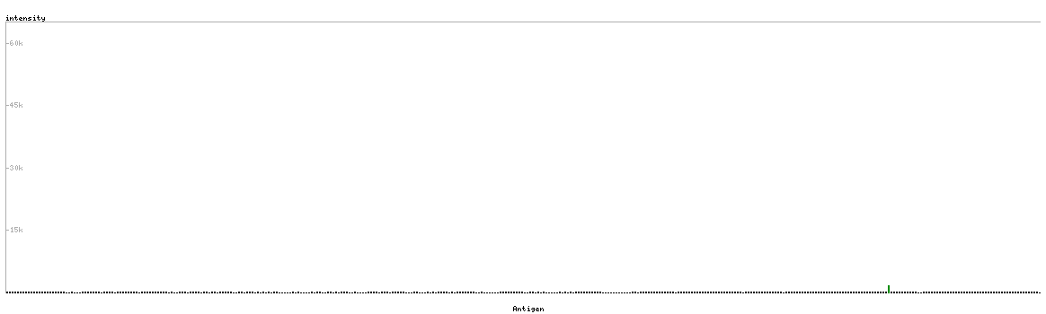At the top of the view, the position of the antigen (identified by the corresponding HPA identifier) is shown as a green bar. A yellow triangle on the bar indicates a <100% sequence identity to the protein target.