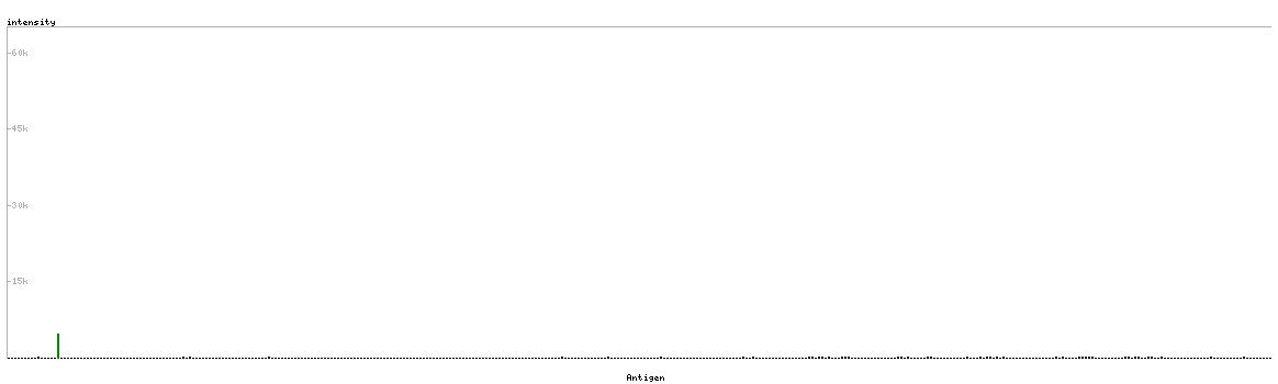 At the top of the view, the position of the antigen (identified by the corresponding HPA identifier) is shown as a green bar. A yellow triangle on the bar indicates a <100% sequence identity to the protein target.