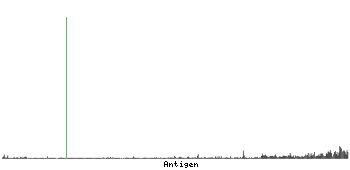 Below the antigens, the maximum percent sequence identity of the protein to all other proteins from other human genes is displayed, using a sliding window of 10 aa residues (HsID 10) or 50 aa residues (HsID 50). The region with the lowest possible identity is always selected for antigen design, with a maximum identity of 60% allowed for designing a single-target antigen (read more).