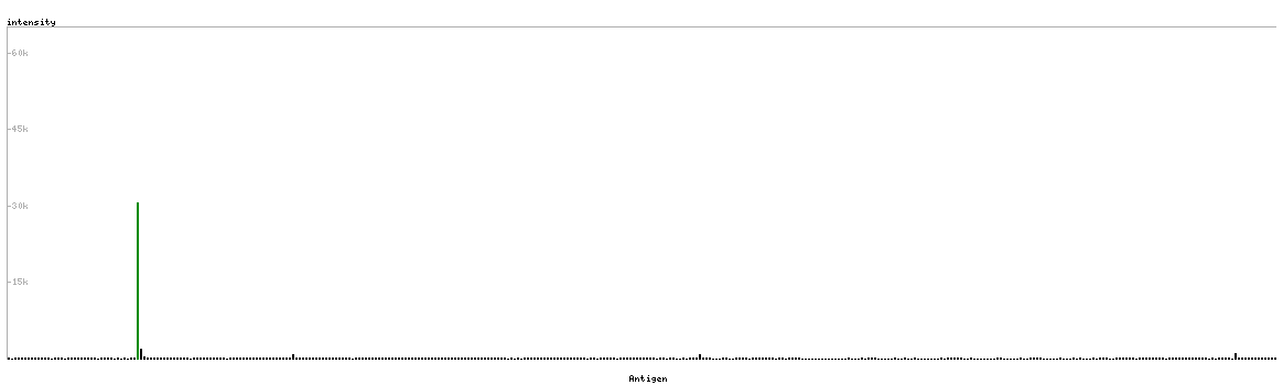 The curve in blue displays the predicted antigenicity i.e. the tendency for different regions of the protein to generate an immune response, with peak regions being predicted to be more antigenic.The curve shows average values based on a sliding window approach using an in-house propensity scale. (read more).