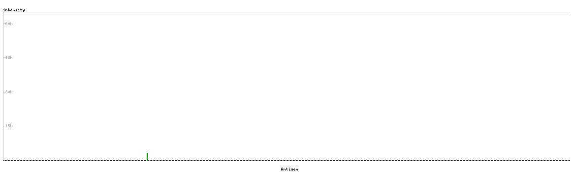 At the top of the view, the position of the antigen (identified by the corresponding HPA identifier) is shown as a green bar. A yellow triangle on the bar indicates a <100% sequence identity to the protein target.