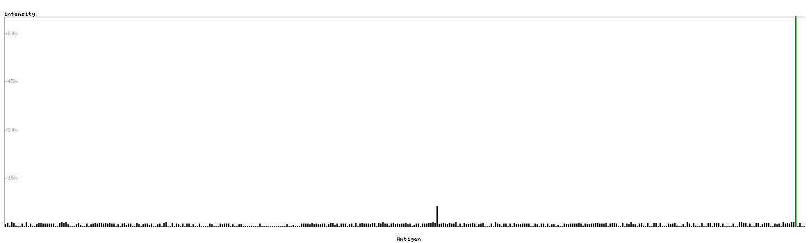 The curve in blue displays the predicted antigenicity i.e. the tendency for different regions of the protein to generate an immune response, with peak regions being predicted to be more antigenic.The curve shows average values based on a sliding window approach using an in-house propensity scale. (read more).