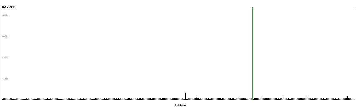 The curve in blue displays the predicted antigenicity i.e. the tendency for different regions of the protein to generate an immune response, with peak regions being predicted to be more antigenic.The curve shows average values based on a sliding window approach using an in-house propensity scale. (read more).