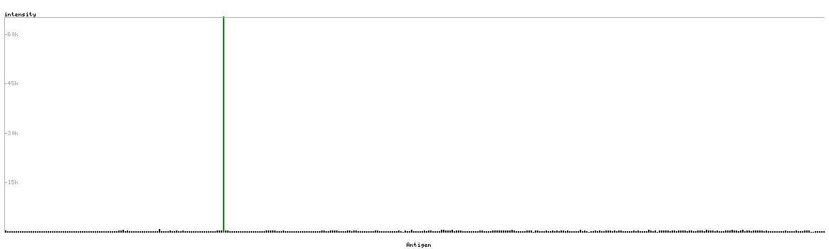 The curve in blue displays the predicted antigenicity i.e. the tendency for different regions of the protein to generate an immune response, with peak regions being predicted to be more antigenic.The curve shows average values based on a sliding window approach using an in-house propensity scale. (read more).