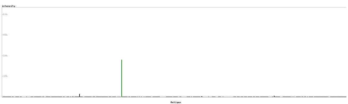 The curve in blue displays the predicted antigenicity i.e. the tendency for different regions of the protein to generate an immune response, with peak regions being predicted to be more antigenic.The curve shows average values based on a sliding window approach using an in-house propensity scale. (read more).