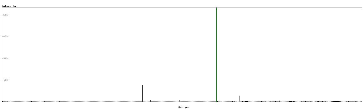 The curve in blue displays the predicted antigenicity i.e. the tendency for different regions of the protein to generate an immune response, with peak regions being predicted to be more antigenic.The curve shows average values based on a sliding window approach using an in-house propensity scale. (read more).