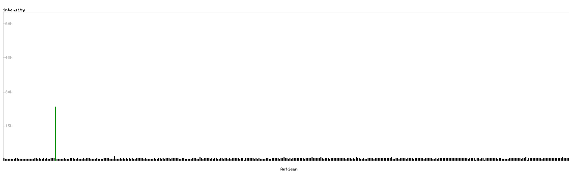 The curve in blue displays the predicted antigenicity i.e. the tendency for different regions of the protein to generate an immune response, with peak regions being predicted to be more antigenic.The curve shows average values based on a sliding window approach using an in-house propensity scale. (read more).