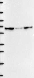A Western blot analysis is performed on a panel of human tissues and cell lines to evaluate antibody specificity. For antibodies with unreliable result a revalidation using an over-expression lysate is performed.