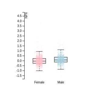 A gene is classified as upregulated in a disease if the average concentration of all samples of that disease is significantly higher (adj P-value<0.005 and NPX difference>=1) than the average concentration of samples of all diseases as measured by PEA . For gender specific diseases the analysis includes only samples corresponding to the same gender from the other diseases.