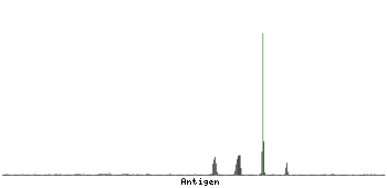 The curve in blue displays the predicted antigenicity i.e. the tendency for different regions of the protein to generate an immune response, with peak regions being predicted to be more antigenic.The curve shows average values based on a sliding window approach using an in-house propensity scale. (read more).